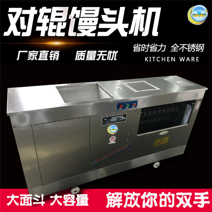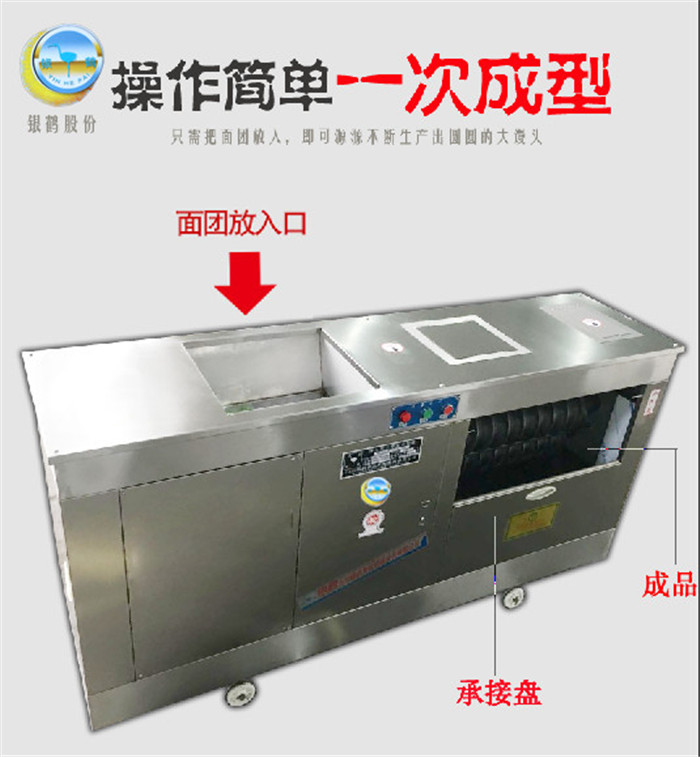 大容量饅頭機(jī)是我公司在原對(duì)輥饅頭機(jī)的基礎(chǔ)上研制開(kāi)發(fā)的一種新產(chǎn)品,它能將和好的40至50斤的面團(tuán)通過(guò)輸送、剪切、滾圓的方法加工成圓球狀饅頭,真正實(shí)現(xiàn)了省時(shí)省力省人工費(fèi)用。本機(jī)加工制作好的饅頭成型好,效率高,操作方便,清理簡(jiǎn)單,饅頭大小可調(diào),是一種理想的饅頭加工設(shè)備。